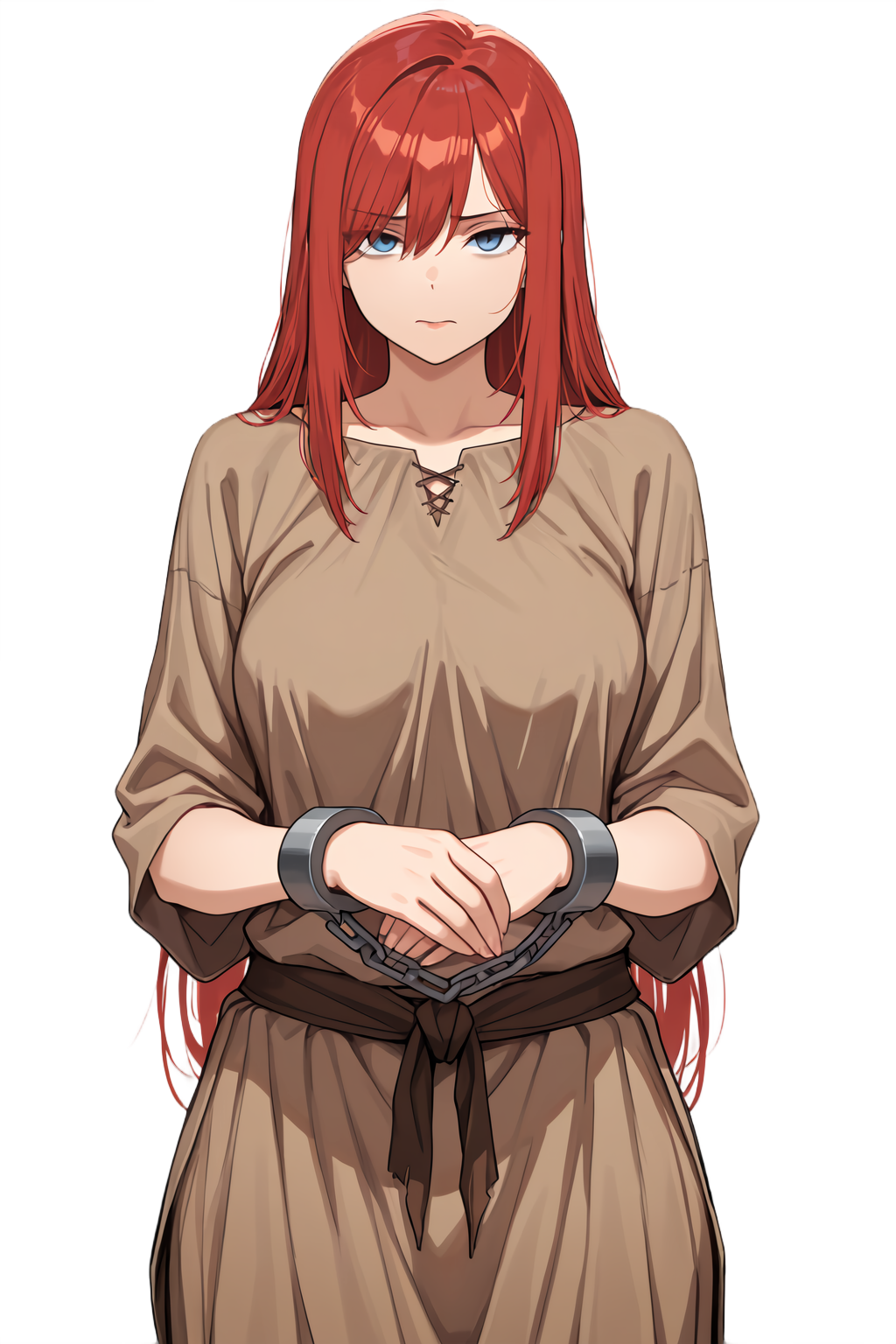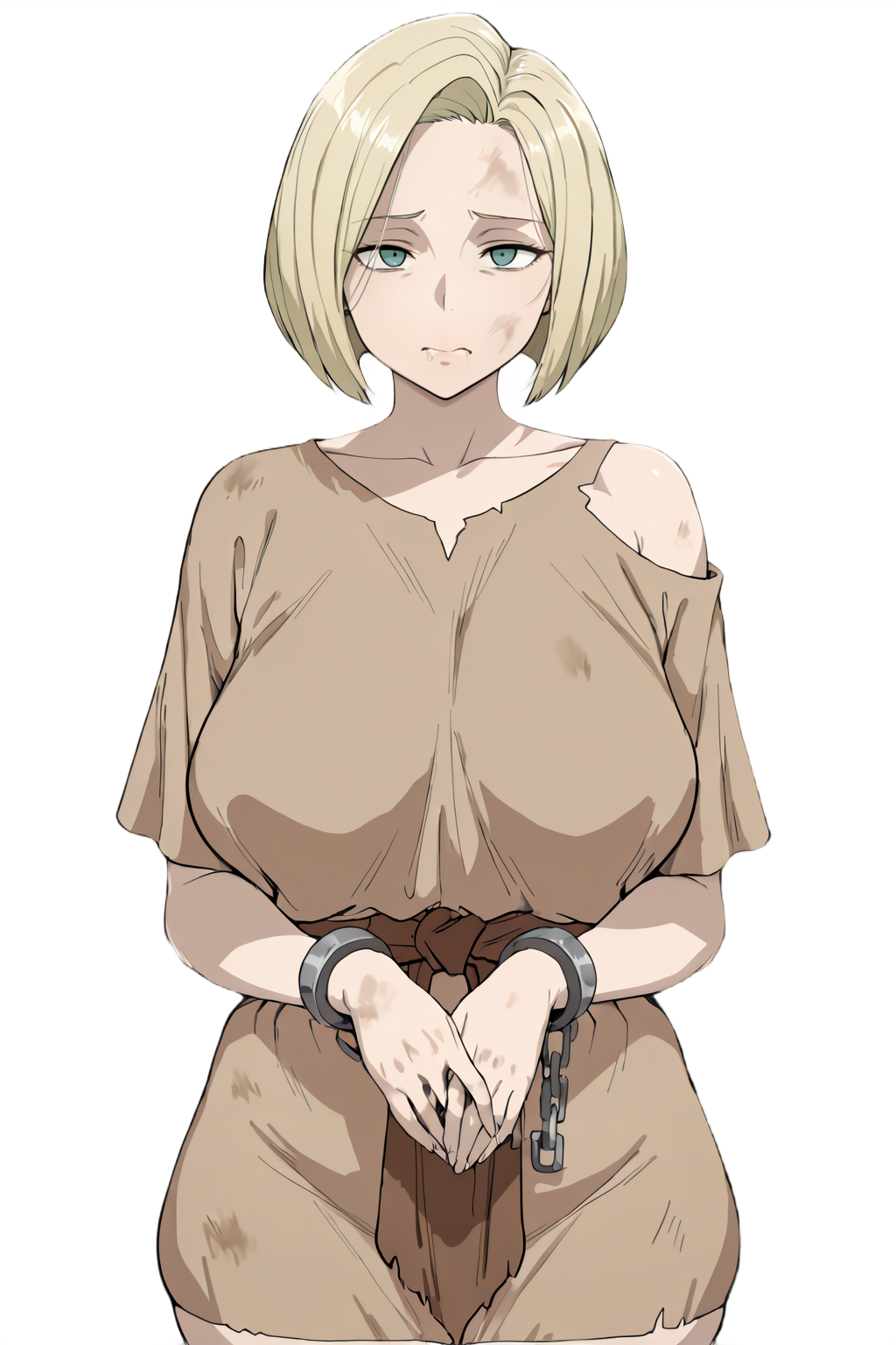 A defiant young woman undergoing slave training at the market pens.